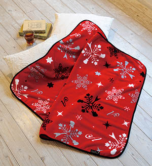 ギターをモチーフにした雪の結晶柄が可愛い、ふわふわ優しい肌触りのブランケット。