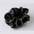 艶やかなサテン地にキラキラ輝くバーボールチェーンの縁取りが映えるエレガントなシュシュ。髪を結ぶのはもちろん、ライブではブレスレットがわりに着けても華やかなアクセントになります。
